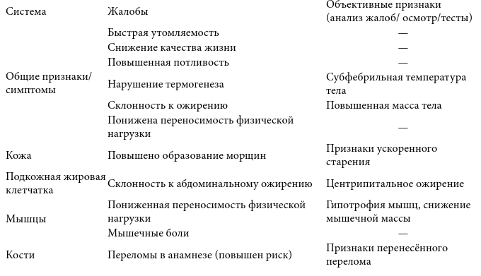 Пониженная секреция СТГ у взрослых никакими специфическим симптомами не проявляется, хотя в некоторых руководствах выделяют так называемый синдром дефицита гормона роста у взрослых (табл. 7.4).