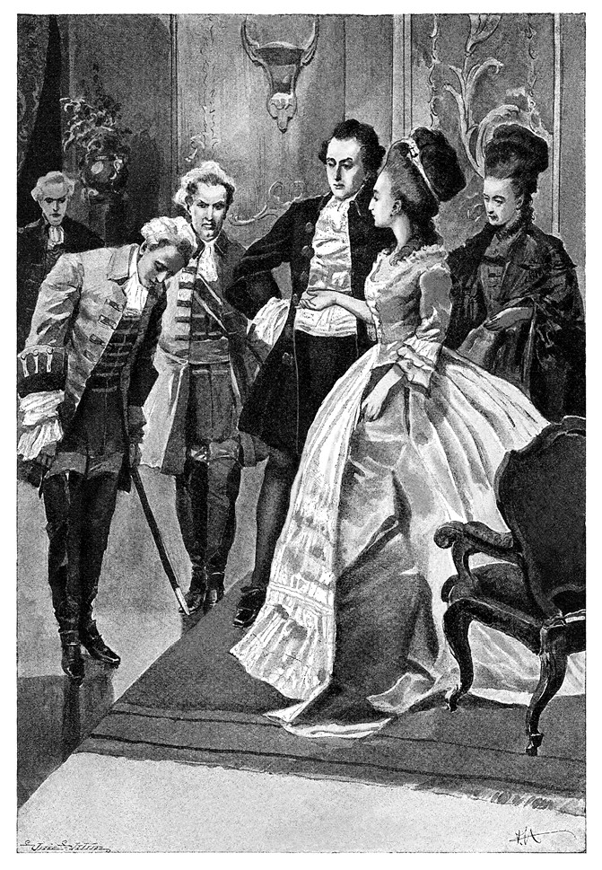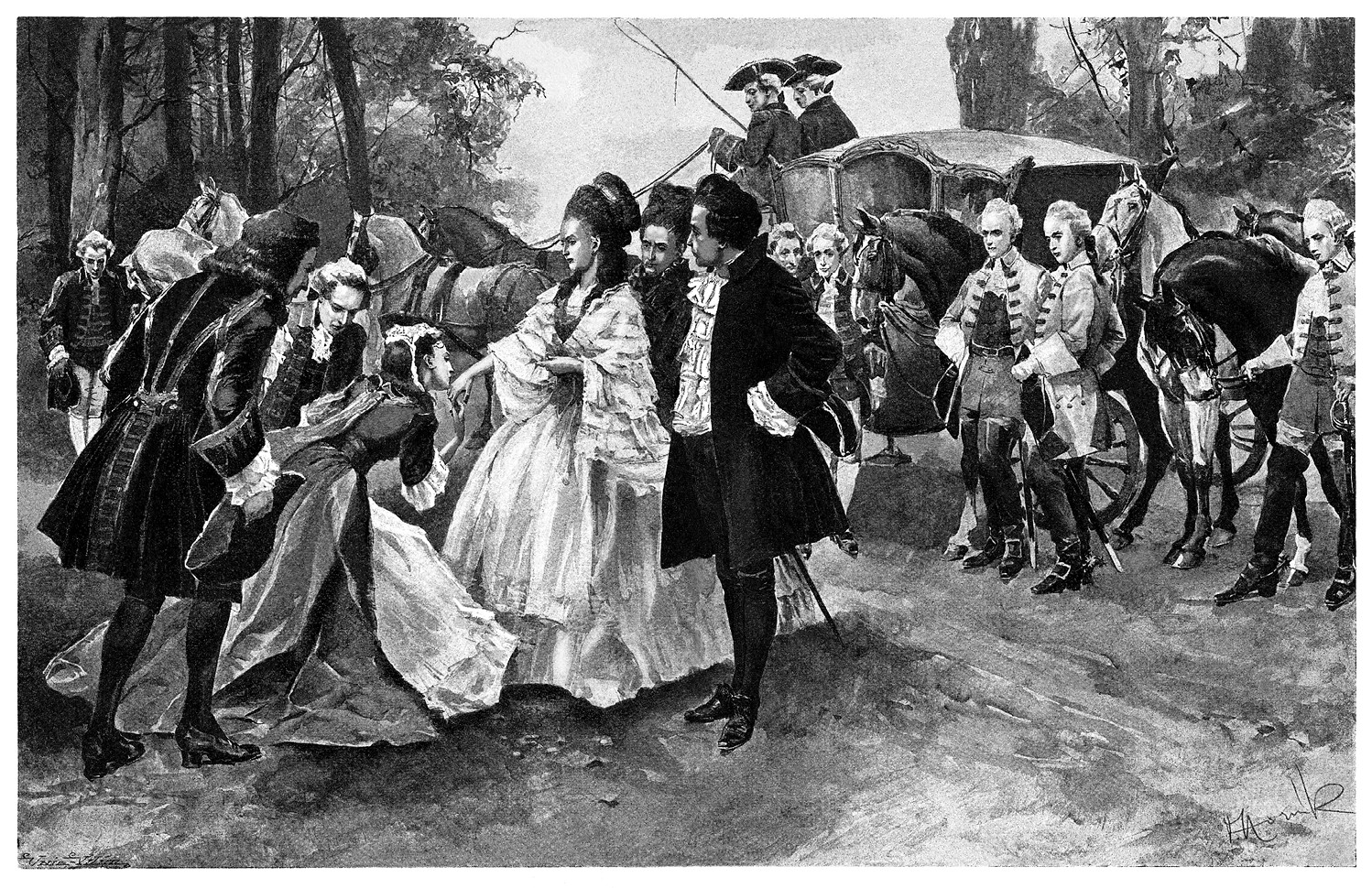 – Я знаю, что я в гостях у старого французского воина, – отвечала ему дофина. – Моя мать, императрица Мария-Терезия, которая вела много войн, говорила мне, что в вашей стране люди, наиболее богатые славой, чаще всего бедны деньгами. – И с неподражаемым изяществом она протянула руку Андреа, которая, преклонив колено, поцеловала ее.