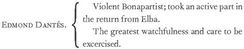 The inspector kept his word with Dantès: he examined the register, and found the following note concerning him:—