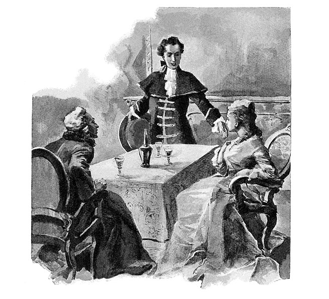 – Ах, – вздохнул барон, – было время, мы засиживались за столом до двух ночи. Но тогда нам было чем угоститься на ужин! А когда еда уже не шла нам в глотку, мы продолжали пить. Но что за радость запивать трапезу дрянным вином… Леге, подайте бутылку мараскина… если там еще что-нибудь осталось.