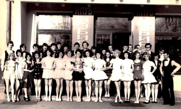 Ансамбль бального танца «Ритм» ДК Железнодорожников 1977 год. Я второй справа (второй ряд), Надя третья справа (первый ряд)