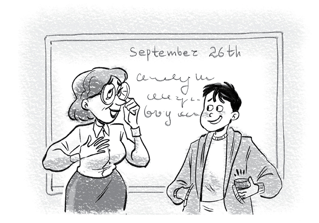 Родители тоже занервничали. И придумали у себя в чате вот какую штуку: вот уже скоро, пятого октября, устроить в школе перформанс на День учителя. Цветы подарить, стихи прочитать. Про что? Тоже про школу, конечно.