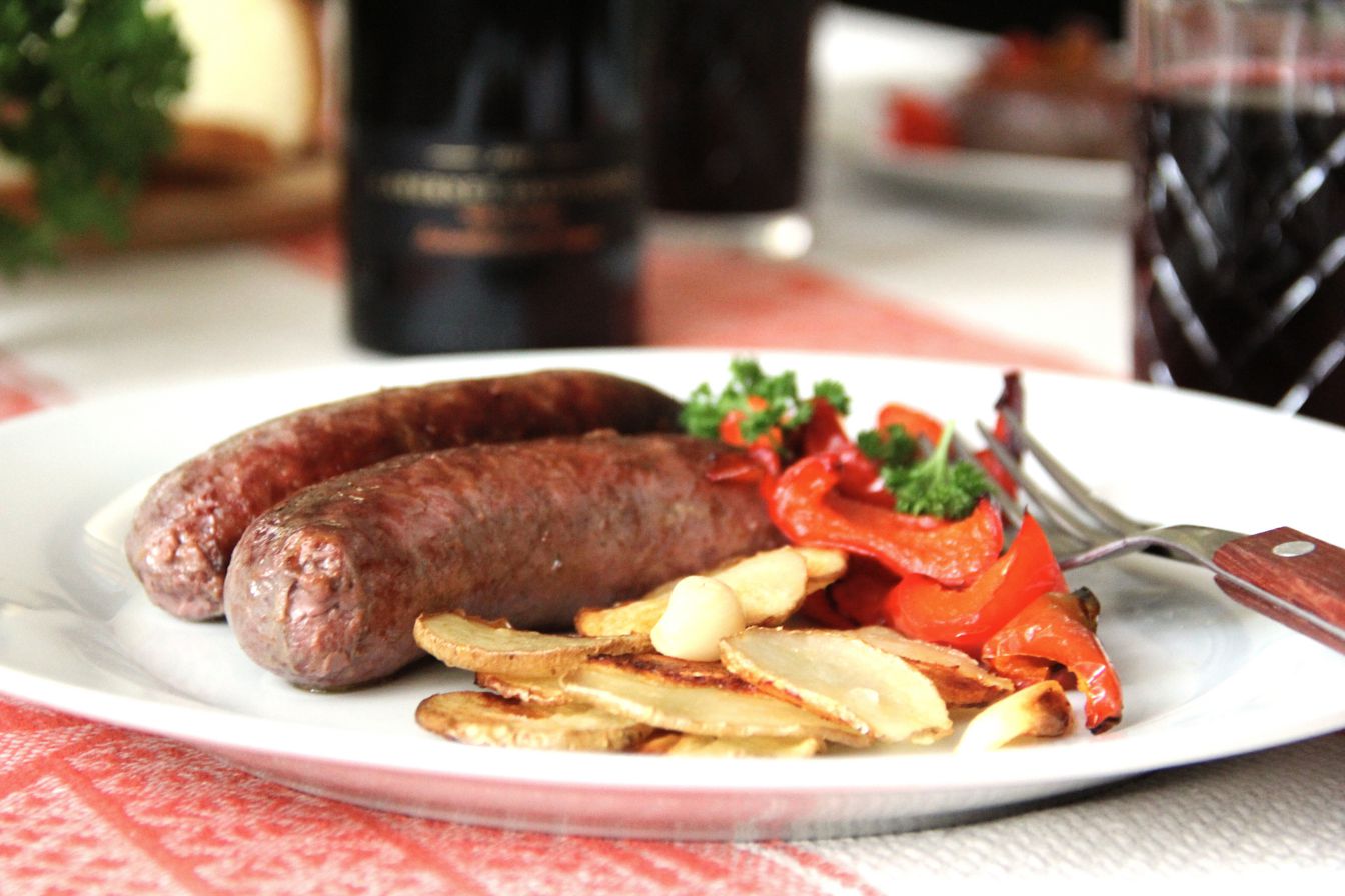 ЖАРЕНАЯ КОЛБАСА ИЗ ЛОСЯТИНЫ С ПЕЧЕНЫМИ ОВОЩАМИ