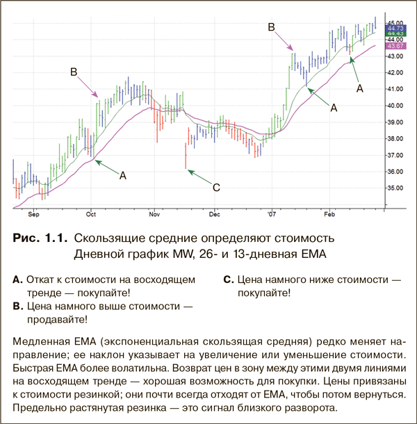 В основе большинства решений о покупке лежит мысль в том, что цена ниже стоимости. Трейдеры покупают, думая, что то или иное событие в будущем увеличит цену их торгового инструмента. Логично покупать по цене ниже стоимости и продавать по цене выше стоимости. Но чтобы претворить эту идею в жизнь, нужно ответить на три вопроса: как определить стоимость? Как отследить ее изменения? Как измерить разницу между ценой и стоимостью?