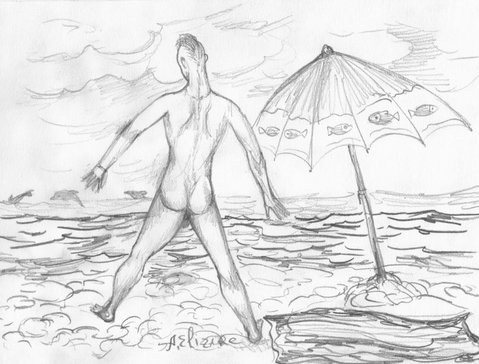 С каждым днем наш пляж становится все более мужским, пар уже практически нет, а одинокие дамы не осмеливаются подойти ближе, чем на сто шагов наблюдая за кучкой загорелых, обнаженных мужчин. Две интересные женщины лет сорока, увязались с нами на наш дикий пляж, я им рассказал о превратностях судьбы и о нашем директоре пляжа – Саше. Они шли с нами бодро и улыбались, но, когда голый и огромный директор с сигарой в зубах радостно пошел к ним на встречу, почему-то резко остановились. Женщины так и не решились переступить черту, выложенную из белых камешков, и повернули обратно. Конечно, не сразу.