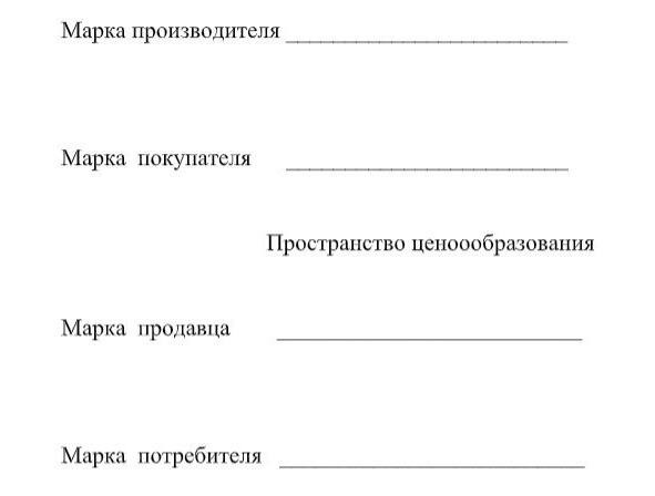 Утверждается, что марка производителя всегда больше марки потребителя, но на рынке (в отличие от обмена) встречаются не эти позиции, а продавец и покупатель, при этом марка продавца есть сумма издержек производства и действующей в данное время и в данном месте нормы прибыли, а марка покупателя отражает его представления о стандартах качества жизни. Пространство ценообразования взаимовыгодно (любая точка этого пространства имеет цену выше, чем марка продавца и ниже, чем марка покупателя) только потому, что в сознании покупателя образ (символ) жизни всегда превосходит саму жизнь.