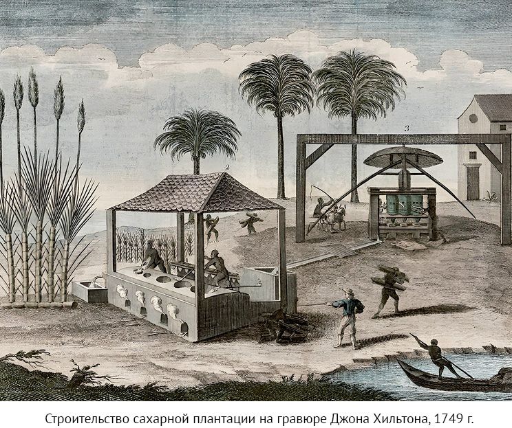 Работа на сахарных плантациях тогда была сущим адом. Тростник – не тонкая трава, и, чтобы получить из него сок, работникам приходилось разламывать 10-сантиметровые стебли. Руками такую работу было делать практически невозможно, поэтому появились специальные мельницы для измельчения. Затем сок надо было вскипятить, причем кипятить приходилось долго – иногда уходили целые сутки. Логистика тоже хромала – сырой сахарный тростник занимает кучу места и много весит.