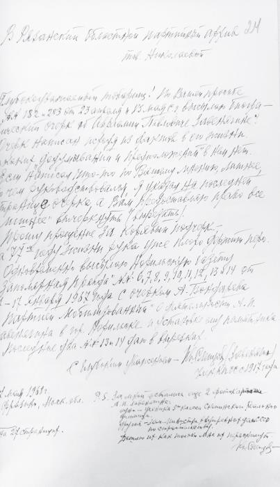Обращение И.П. Слепцова (Завенягина) в Рязанский областной партийный архив