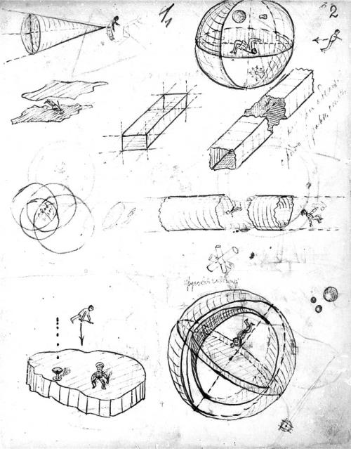 Движение тел в невесомости. Рисунки К.Э. Циолковского