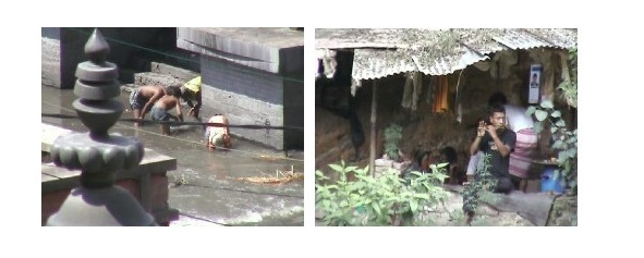 Утро встретило нас если и не безоблачной, то всяком случае, хорошей погодой. Несколько снимков на балконе Tibet Guest House, завтрак, сбор в вестибюле на отъезд по программе сегодняшнего дня. Сначала в храм Пашупатинатх. На этот раз подъехали с другой стороны, с правобережной. Может быть так сделано, чтобы не шокировать неискушённых европейцев сладковатыми запахами дыма от ритуальных костров. Кремация производится здесь ежедневно, разумеется, не взирая на наличие или отсутствие сторонних посетителей.