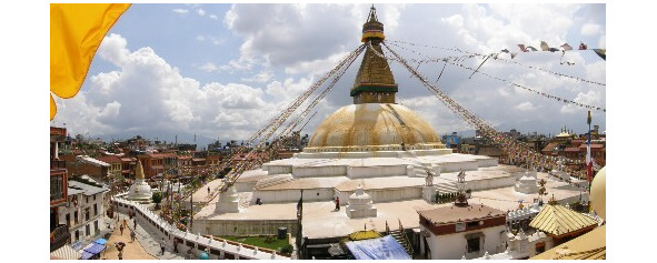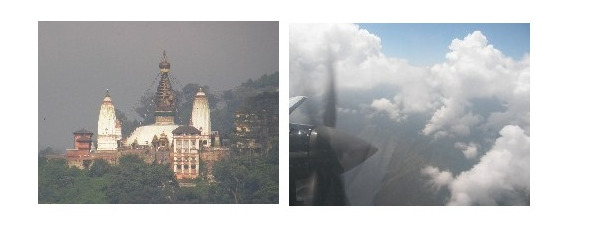 Однако, прозе жизни пришлось вмешаться в плавное течение «сказки 2008»: до вылета надо было посетить китайское консульство, как объяснил Таши, «для face control». Поползли слухи (пока, в основном, на уровне догадок), что опять есть какие-то проблемы с визой в Тибет, но пока только слухи. Облачная, но вполне лётная погода, рассеивала в дымке на горизонте ступу Сваямбунатх. Посещение её у нас впереди, после Лумбини, а пока можно полюбоваться комплексом издали в мягких тонах.