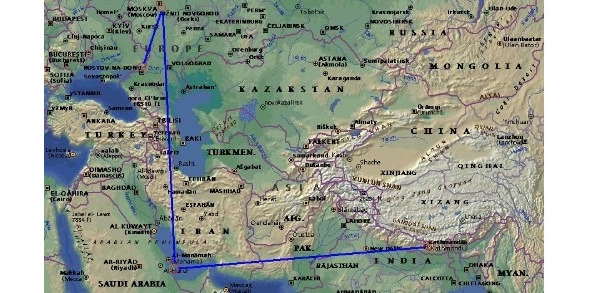 Четырёхчасовое висение в воздухе ничем бы примечательным не запомнилось, если бы не один маленький и как бы не заметный факт – тримула или тришула, как его ещё называют. Второй раз за неделю мне посылается этот знак, как бы приглашая к пониманию или готовности к чему-то важному. Казалось бы, что тут такого – пролетаем над Персидским заливом, виден остров, правда необычной формы (вот он в левой части снимка в виде стилизованного трезубца, впрочем, кому-то напоминающий птицу), но именно в это время и с удивительной готовностью случилось заснять его. В индийской позднейшей мифологии это трезубец Шивы. По поверью индусов он находится в постоянном движении и подставить себя его удару значило бы подвергнуться риску немедленной смерти или перейти на новый уровень понимания бытия. Движение его совершается в различных направлениях по разным дням недели: поэтому, по мнению индусов, опасно двигаться в западном направлении по воскресеньям и пятницам, в северном по вторникам и средам, в восточном по субботам и понедельникам и в южном по четвергам.