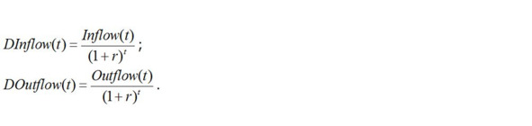 Номинальные значения Inflow (t) и Outflow (t) умножаются на соответствующий коэффициент дисконтирования.
