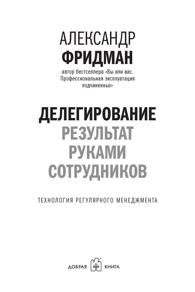 О чем и для кого эта книгаЯ написал эту книгу в качестве учебника для руководителей; в ней изложена технология эффективного делегирования. Делегирование я считаю одной из ключевых управленческих компетенций, так как именно с ее помощью руководитель задает сотрудникам и, через них, своей структуре нужный вектор движения.