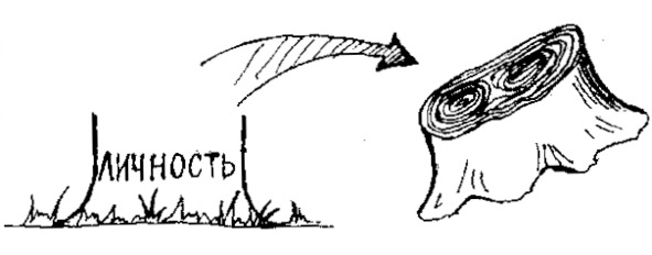 Прежде всего, у дерева есть , который несёт на себе (и в себе) всё остальное. Этот ствол – со всем её наполнением и всеми её особенностями, от линии бедра и гормонального статуса до познавательных установок и сентиментальности. Метафора «ствол» особенно удачна для отражения личности в целом, если вспомнить перепутанные древесные волокна узловатых карельских и уральских берез, растущих на болотистых землях. Неповторимой красоты узор на шедеврах мебельного гарнитура, но какая корявость и трудность обработки! ствол личность ,