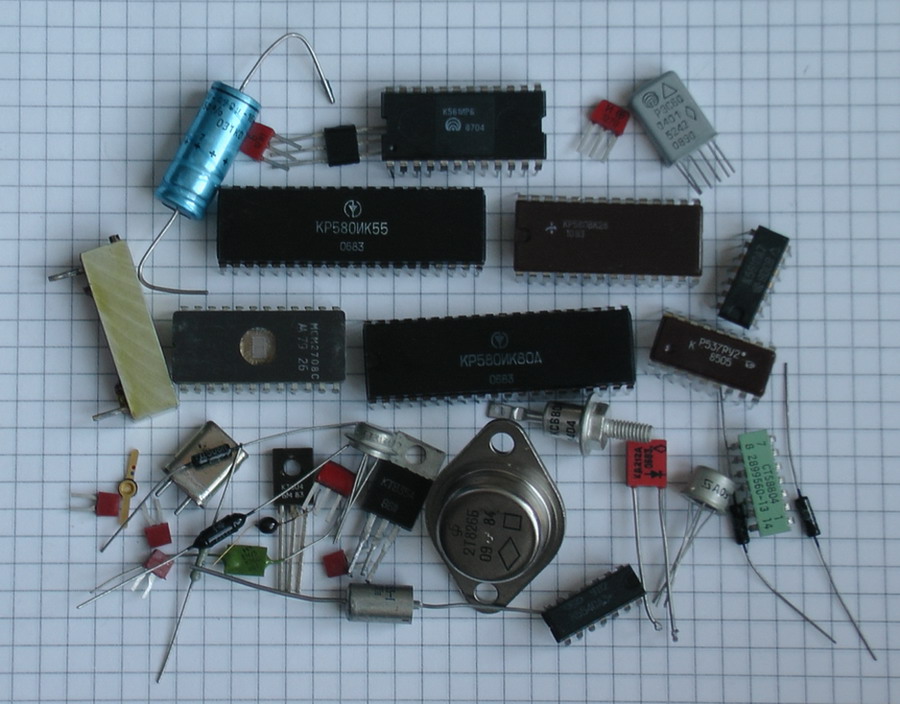 Когда-то давным-давно был доступен только первый способ, и я сам обучался именно так. Я собирал приемники-передатчики на транзисторах и лампах, различные радио устройства, триггеры из транзисторов, регистры из элементов 2И-НЕ на базе К155ЛА3, электронные часы, частотомер и самодельные компьютеры на микросхеме КР580ВМ80А, добавляя россыпь логических микросхем, микросхем памяти и периферийных устройств (рис. В.1). Первые программы были написаны, конечно же, в машинных кодах!