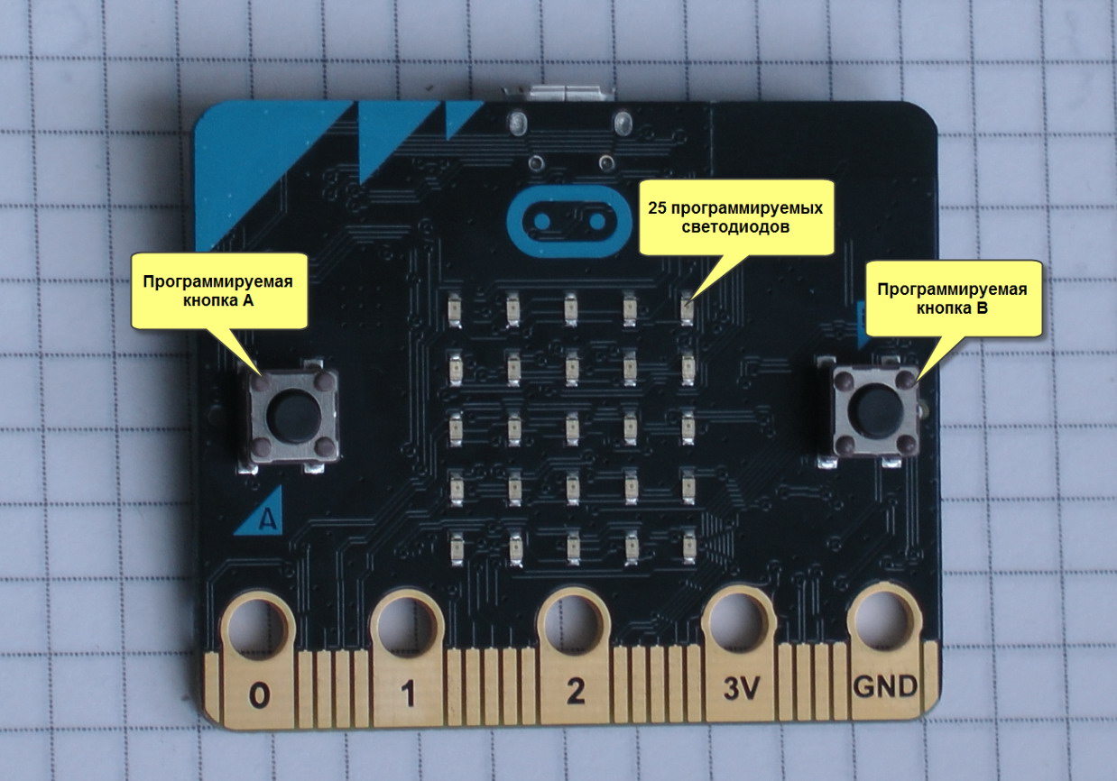 Рис. В.4. Кнопки и светодиодный экран на плате micro:bit v1.5