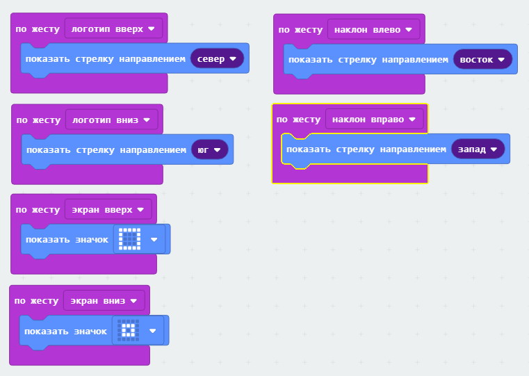 Рис. 5.4. Программа для отслеживания положения платы micro:bit в пространстве