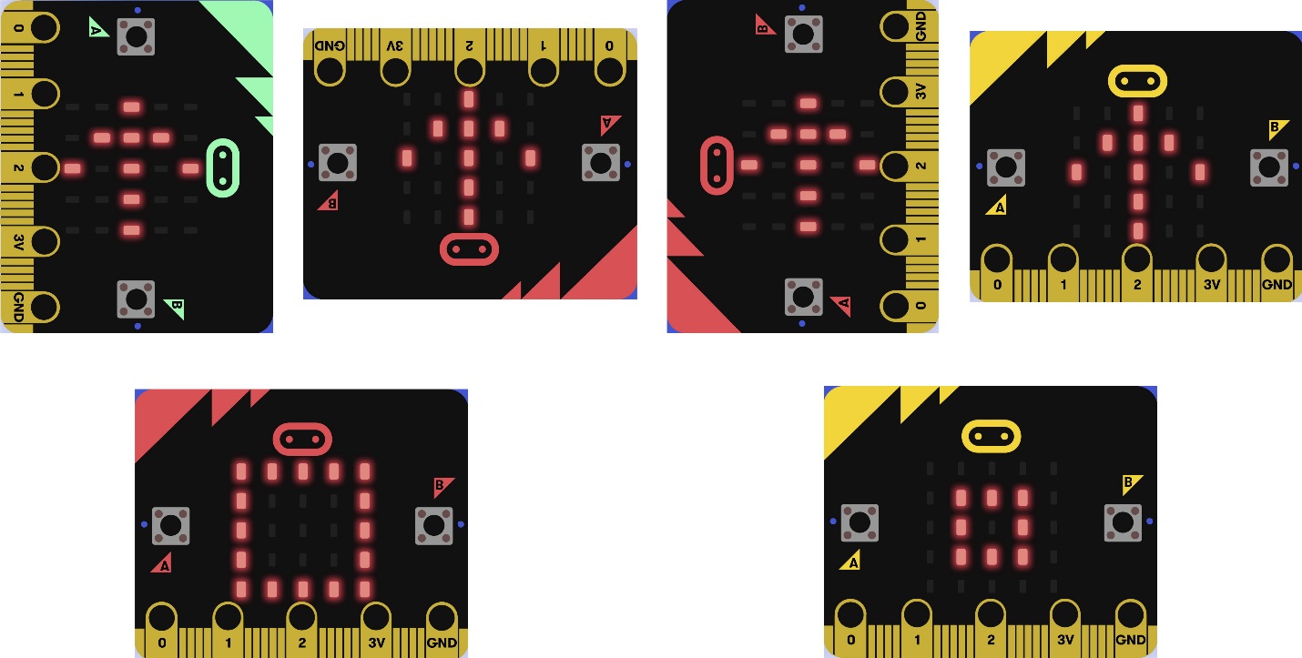 Результатом выполнения любой команды должно быть отображение кода команды на экране micro:bit. Вот список кодов команд: