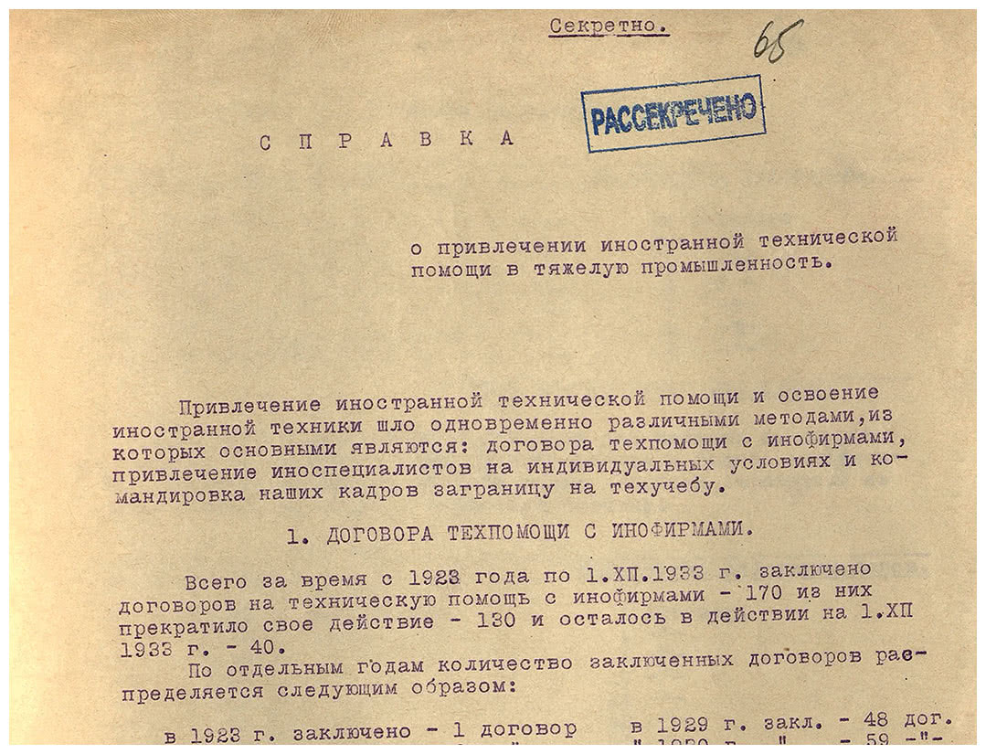 Всего в период с 1923 по 1933 год в отраслях тяжелой промышленности с зарубежными фирмами заключено 170 договоров «на техническую помощь»{176}.