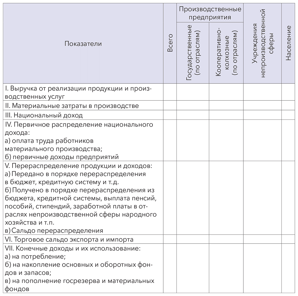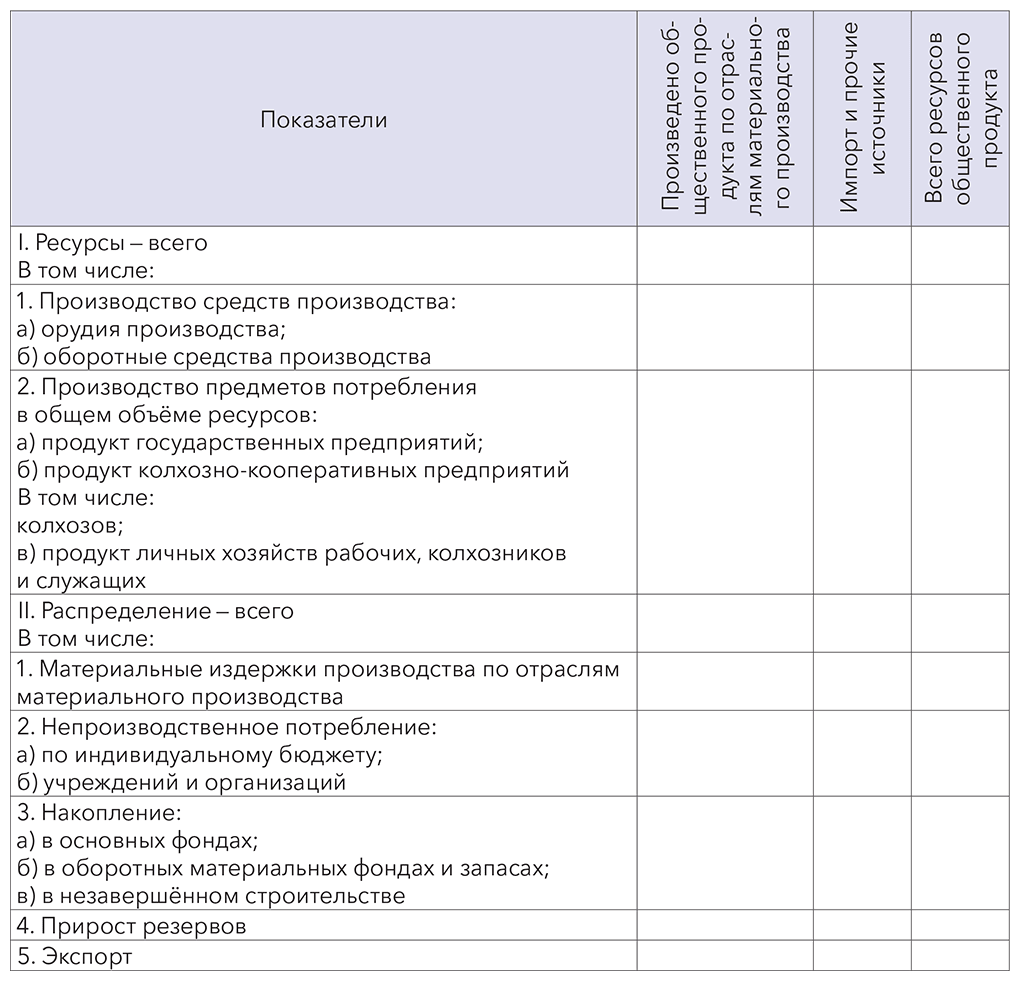 Таблица 13. Схема баланса производства, потребления и накопления общественного продукта