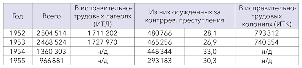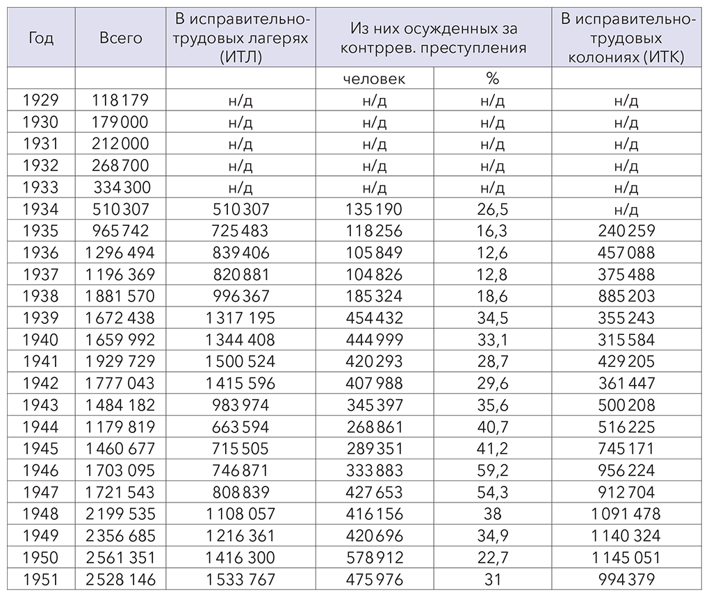 Таблица 21. Численность заключенных ГУЛАГа (по состоянию на 1 января каждого года){568}