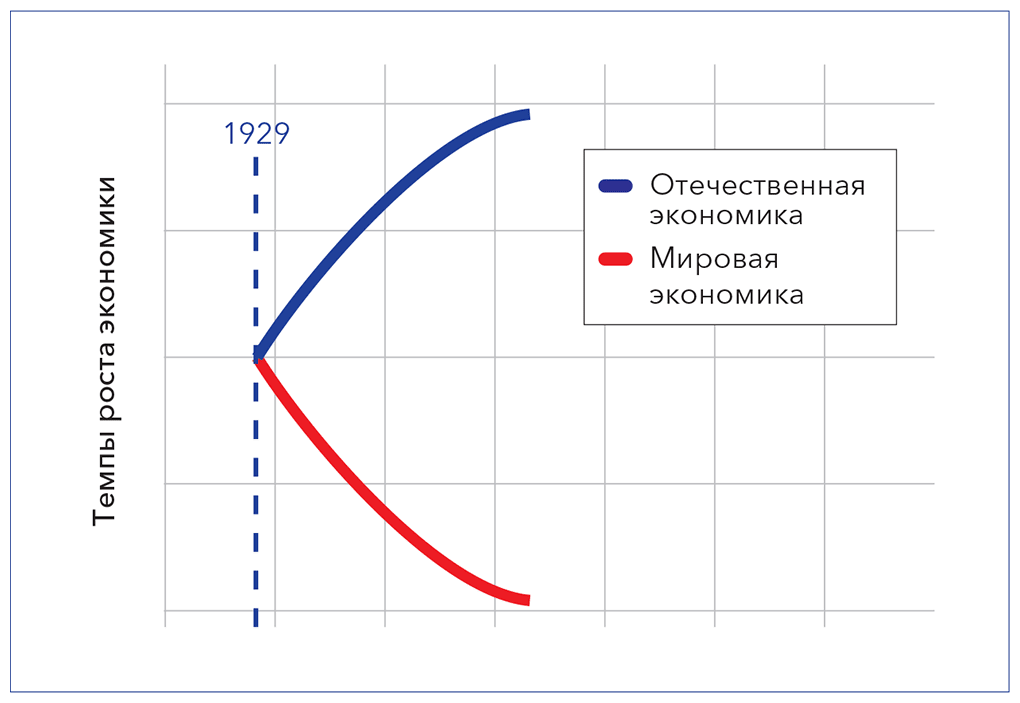 В рамках догоняющего по отношению к мировой экономике этапа (1929–1940 годы) идея развития формулируется следующим образом: «Мы отстали от передовых стран на 50–100 лет. Мы должны пробежать это расстояние в десять лет. Либо мы сделаем это, либо нас сомнут»{97}.
