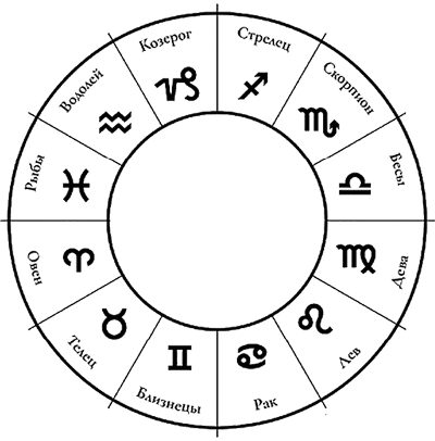 На этом рисунке на первом месте стоит Овен, значит, мы пишем прогноз для Овна. Телец при этом попадает во второй дом, Близнецы – в третий, Рак – в четвертый, Лев – в пятый и т. д.