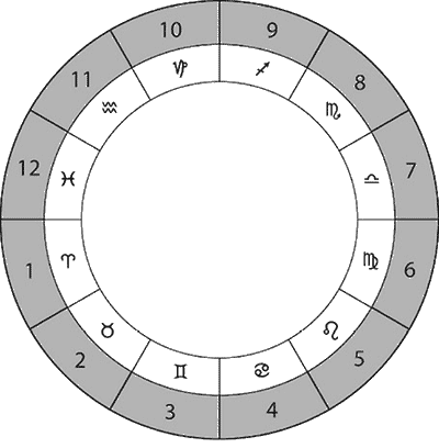 На рисунке 2.1 внутри изображен зодиак, а снаружи – круг астрологических домов.