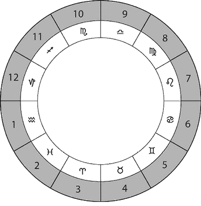 Тот знак зодиака, для которого мы собираемся писать прогноз, будем помещать на первое место, в первый дом. При этом все остальные знаки зодиака будут распределяться по оставшимся одиннадцати домам.