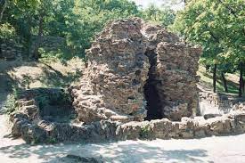 Разочарованный путешественник, пожалевший о своем выборе и чувствуя себя незаслуженно обманутым, по инерции, влекомый силой наименьшего сопротивления, ускоряясь, продолжает идти вниз по наклонной быстрой аллейке. И вдруг, или ему это только показалось, или в самом деле, что-то большое серо-коричневое каменное мелькнуло сквозь стволы деревьев и прозрачную листву кустов. Ещё несколько шагов и зыбкое видение принимает осязаемые формы.