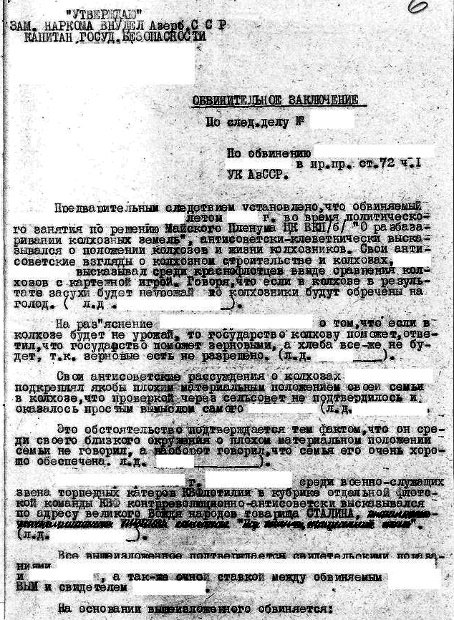 Обвинительное заключение по делу моряка малого охотника М-11 КВФл. Лист 1