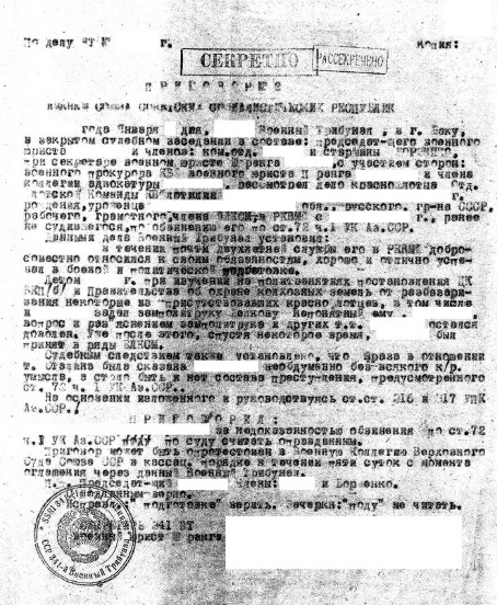 Приговор по делу моряка малого охотника М-11 Каспийской военной флотилии.