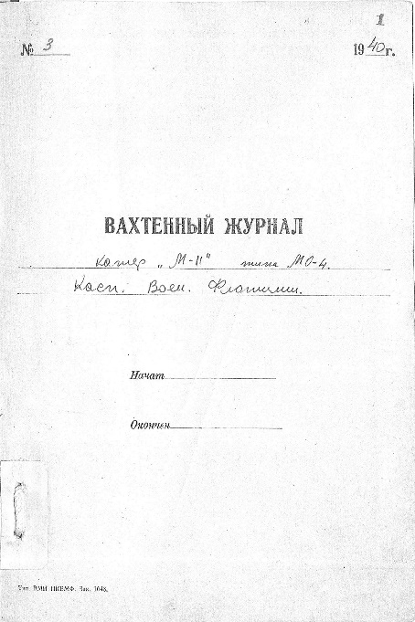 Вахтенный журнал малого охотника М-11 Каспийской военной флотилии за 1940 год
