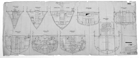 Поперечные сечения по носовым помещениям малого охотника типа МО-IV