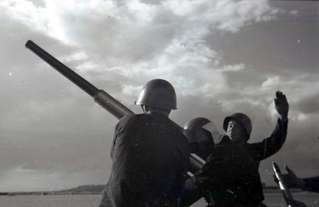 Расчет старшего краснофлотца Демидова Н.Г. катера М-11 ведет огонь по самолету