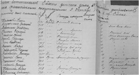 Список воспитанников Ейского детского дома, умерщвленных фашистскими оккупантами 9 октября 1942года в г. Ейске