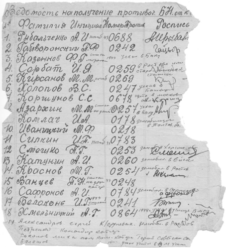 Ведомость выдачи противогазов экипажу малого охотника М-11, 1942 год