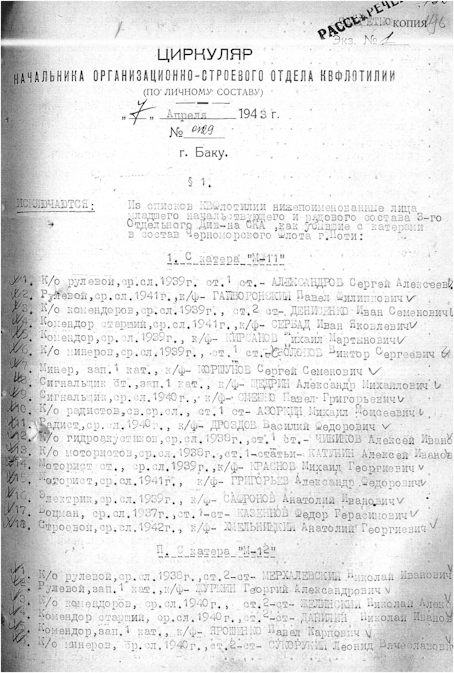 Циркуляр Каспийской военной флотилии № 0129 от 07.04.1943г