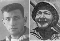 Участники боя с авиацией противника 26-27 апреля 1943 года рулевой, краснофлотец Гайворонский Павел Филиппович и комендор, старший краснофлотец Сербат Иван Яковлевич (фотография из архива дочери – Булаенко Александры Павловны)