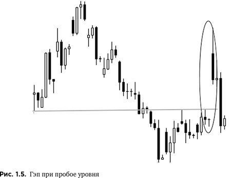 При резкой смене расклада сил продавцов и покупателей гэпы могут возникать и внутри дня. Часто это связано с поступлением на рынок какой-то новой, неожиданной и, следовательно, еще не заложенной в цену информации. В этом случае цена немедленно совершает резкий прыжок – гэп – для выравнивания рыночного баланса.