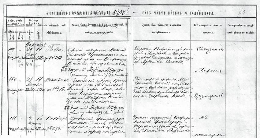 В апреле 1907 г. у супругов Глушко родился первый ребенок – дочь Галина. В книге регистрации актов о рождении и смерти Сретенской церкви (располагавшейся ранее на Новом рынке) за 1907 г. есть запись под № 137 о том, что 4 (16) апреля родилась и 9 (21) апреля крещена девочка по имени Галина. Родителями стали казак Черниговской губернии, Кролевецкого уезда, Алтыновской волости, села Спасского, находившегося недалеко от Глушкова хутора, Пётр Львов[4] Глушко и законная жена его Матрона Симеоновна, оба православные.