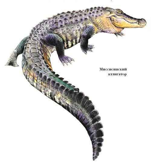 АЛЛИГА́ТОРЫ, семейство крокодилов. Включает 4 рода, один из которых – собственно аллигаторы (2 вида), а 3 объединены под общим названием – кайманы. В отличие от других крокодилов, у аллигаторов длинная широкая морда с характерным строением зубов: нижнечелюстные зубы заходят внутрь верхнечелюстного зубного ряда. Миссисипский аллигатор на передних конечностях имеет плавательные перепонки. Этот обитатель болот и пресных водоёмов юго-востока Северной Америки достигает длины почти 6 м. Он выкапывает и поддерживает в хорошем состоянии пруды, которые становятся постоянным местом жизни для многих видов наземных и пресноводных растений и животных, особенно в период засух. Под корнями деревьев, растущих на берегах, аллигаторы роют норы и тоннели дл. до 6 м, где прячутся во время зимовок и засух, а самки строят у прудов, относящихся к их территории, гнёзда из водорослей и вырванной травы, куда откладывают от 20 до 60 яиц. Так же как и другие крокодилы, оба родителя охраняют кладку. Самка перемешивает прелую траву под яйцами, чтобы тепло от её гниения равномерно их прогревало. Ухаживание за потомством – как и у нильского крокодила, но «ростовые» пруды роют и обустраивают сами родители. В них крокодильчики живут от 1 до 3 лет. В прошлом миссисипский аллигатор был сильно истреблён из-за ценной кожи и преследования фермерами, осушающими болота и оберегающими свой скот. Стал редким видом и был включён в Красную книгу МСОП, но в результате интенсивного разведения на специальных фермах численность этого аллигатора достигла почти миллиона особей, и в 1985 г. он был исключён из Красной книги. Крайне редкий китайский аллигатор, длина которого не превышает 2 м, обитает в нижнем течении р. Янцзы. Исчезает из-за разрушения местообитаний и браконьерской охоты. Осталось немногим более 300 особей. Внесён в Красную книгу МСОП.