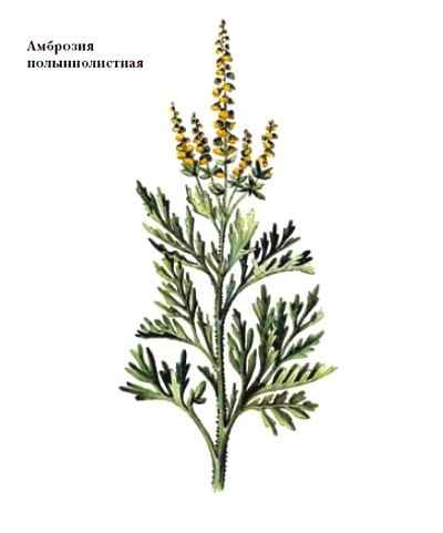 АМБРО́ЗИЯ, род растений сем. сложноцветных. Включает ок. 40 видов одно– и многолетних трав. Родина – Америка. В России (южные и юго-восточные области, Приморье) встречаются 3 вида амброзии: полыннолистная, трёхраздельная и голометельчатая. Все – карантинные сорняки. Амброзия полыннолистная – однолетник выс. 20—200 см со слабо опушёнными перисто-рассечёнными листьями. Образует огромную массу, заглушая культурные растения, истощая и иссушая почву. Размножается семенами, которые сохраняют всхожесть до 5 лет и более. Пыльца вызывает аллергию. Впервые сорняк обнаружен в стране в 1918 г. Амброзия трёхраздельная – однолетник выс. до 150 см. Встречается на Северном Кавказе, в Поволжье, Приморье. Размножается семенами. Впервые обнаружена в стране в 1935 г. Амброзия голометельчатая – многолетний корнеотпрысковый сорняк выс. 60—80 см. Листья с густым щетинистым опушением. Размножается в основном корневой порослью, корневищами и отрезками корней. Встречается на юге и юго-востоке страны.