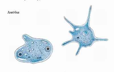 АМЁБЫ, класс простейших типа саркодовых. Это наиболее просто устроенные корненожки, которые не имеют раковины. Размеры от 20 до 700 мкм. Амёбы имеют изменчивую форму тела, т.к. постоянно образуют выросты – ложноножки, или псевдоподии, в которые при передвижении «перетекает» цитоплазма. В цитоплазме имеются ядро, пищеварительная и сократительная вакуоли.