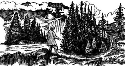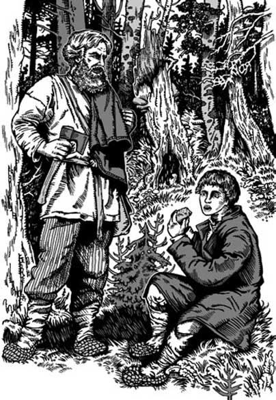 Всю дорогу бородач молчал. Шли они долго, без троп. Идти было трудно, но Егор, подкрепленный хлебом и надеждой, не отставал от дяденьки. Наконец на одном подъеме, где лес сменился замшелыми гранитными плитами, спутник Егора показал вниз и сказал:
