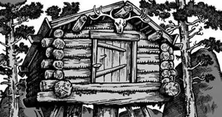 Капище Чохрынь-ойки – обыкновенный амбарчик-чомья на двух гладких, покосившихся от времени столбах. Над крышей топырились великолепные лосиные рога.