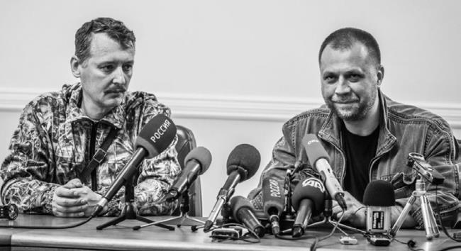 Игорь Стрелков и Александр Бородай на пресс-конференции в Донецке, июль 2014 года