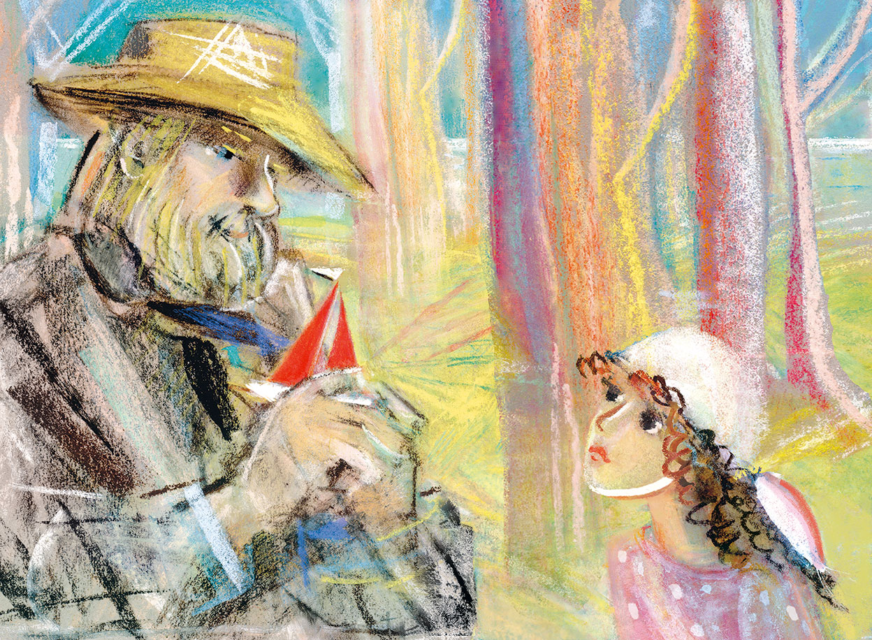 Лонгрен работал в своем маленьком огороде, окапывая картофельные кусты. Подняв голову, он увидел Ассоль, стремглав бежавшую к нему с радостным и нетерпеливым лицом.