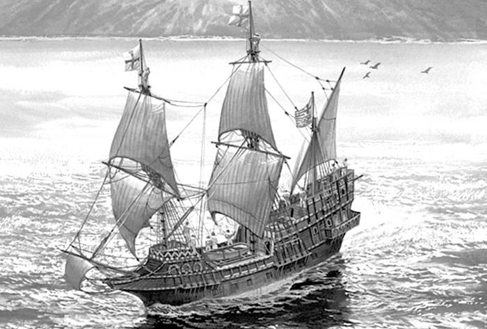 Английский торговый галеон «Мейфлауэр» («Майский цветок», так в Англии называли боярышник) в 1620 году одним из первых доставил через Атлантический океан в Северную Америку из английского города Плимута 102 переселенца. Они называли себя пилигримами.